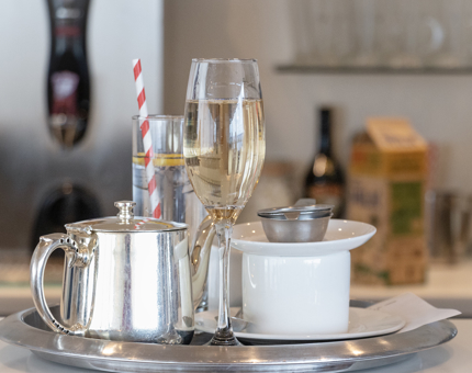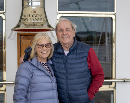 Senior Host, Gayle, and Waiter, Achilleas are delighted to be greeting visitors to the Royal Deck Tearoom.