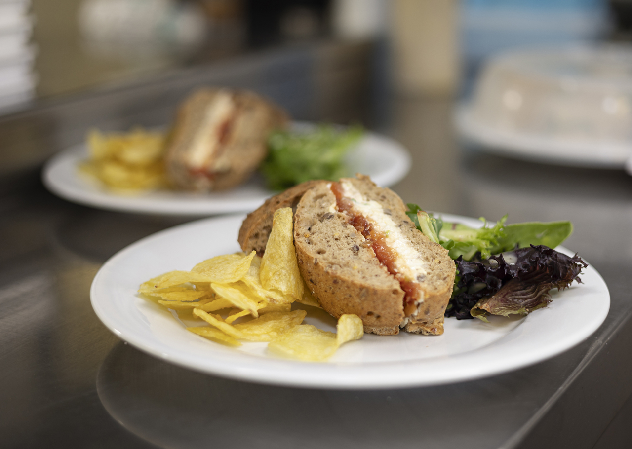 A mature cheddar, spring onion mayonnaise and Arran chutney sandwich, prepared on a gluten-free roll, is a tasty lunchtime option. Our Tearoom team is always happy to recommend menu options to suit your dietary needs.