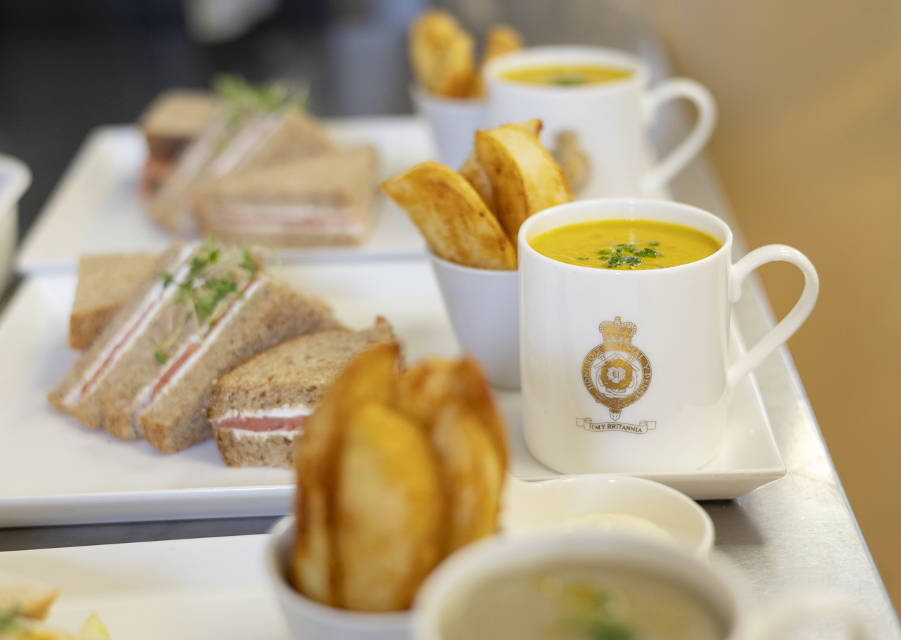New to the menu in the Royal Deck Tearoom, Britannia’s Reuben sandwich is layered with pastrami, mature cheddar, sauerkraut and Dijon mustard, and served with fries and pickles.