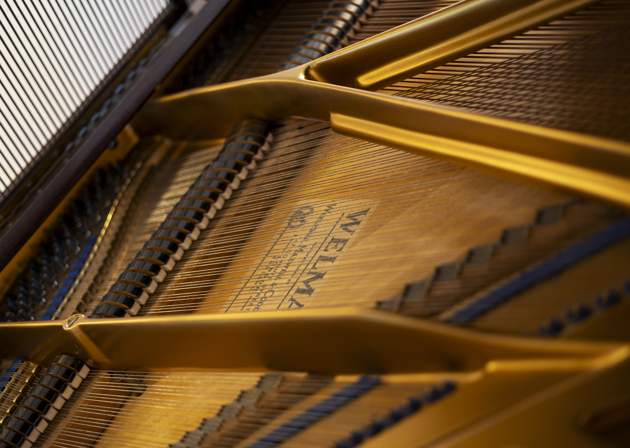 The Welmar baby grand piano in the State Drawing Room was securely bolted to the deck to prevent it from moving in choppy seas.
