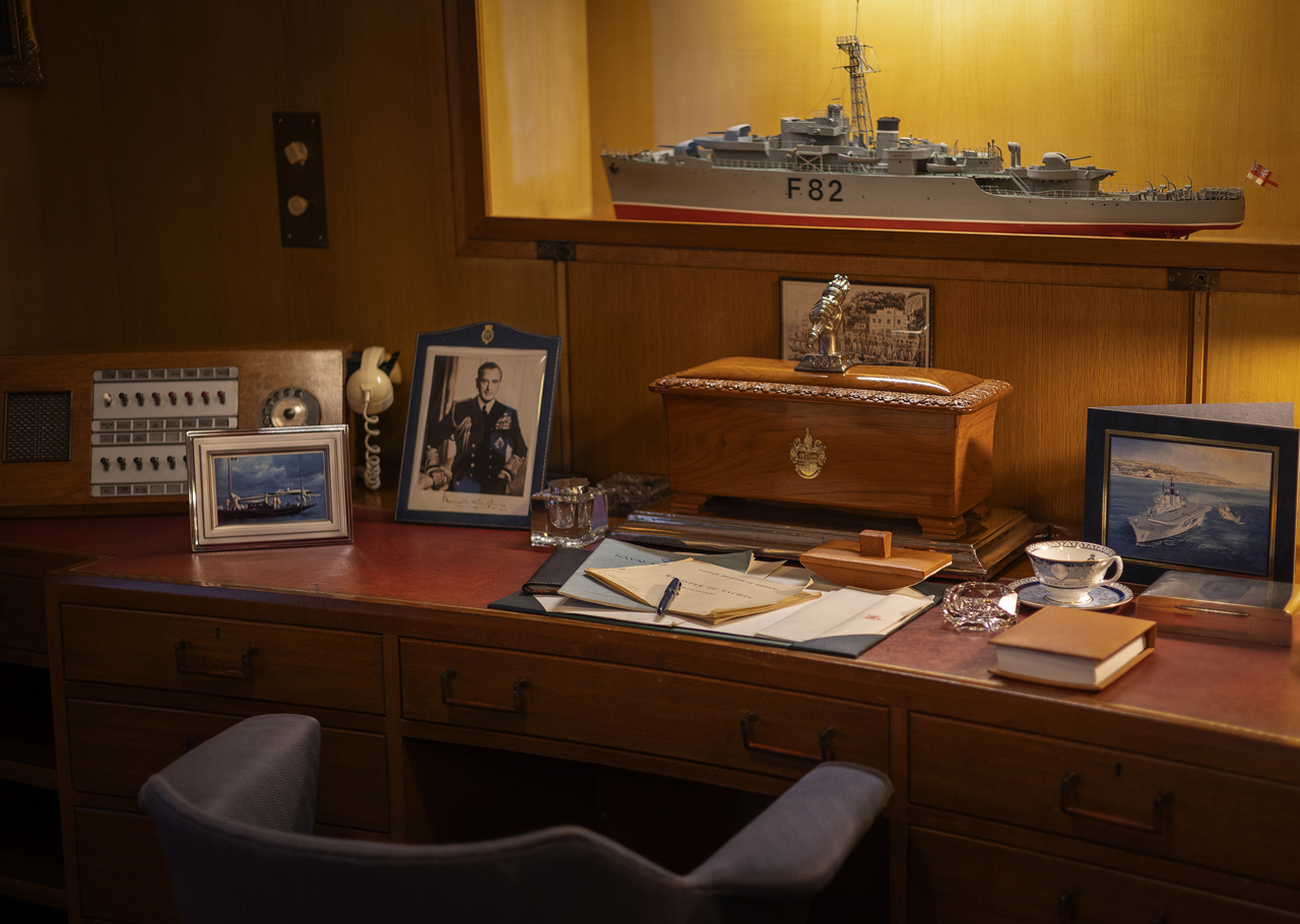 Taking pride of place in Prince Philip’s Sitting Room is a model of HMS Magpie, his first naval command and a treasured memento