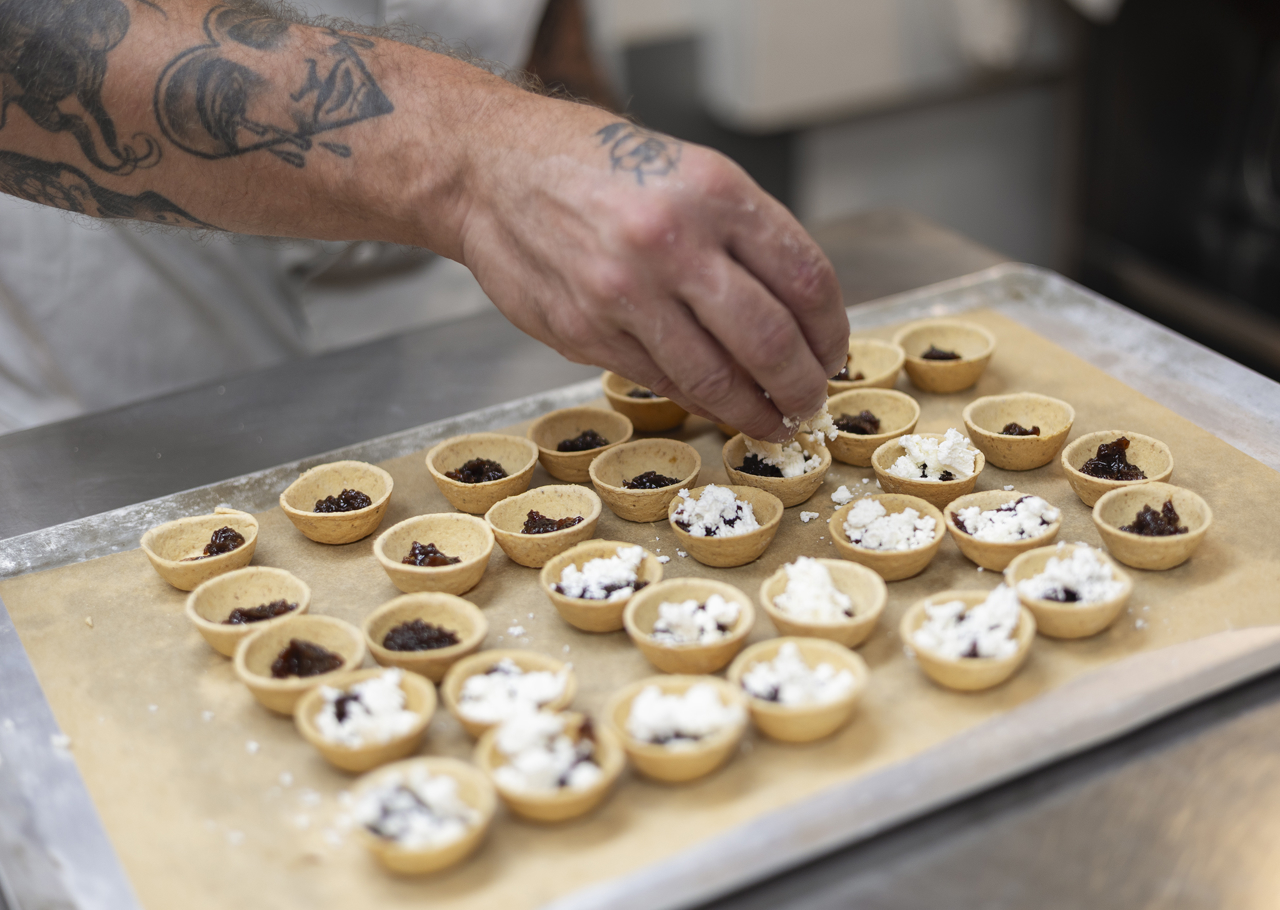 Goats' cheese tarts being prepared in the Galley to be served at an exclusive evening event aboard Britannia.