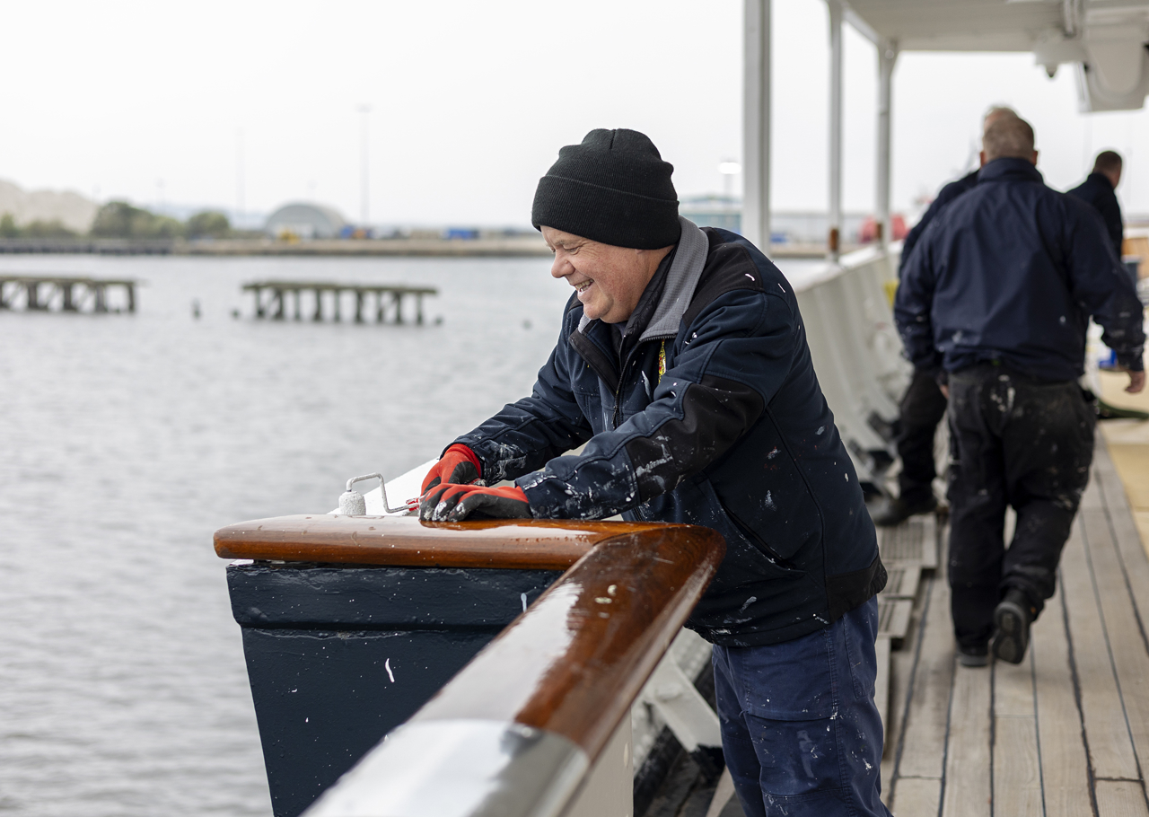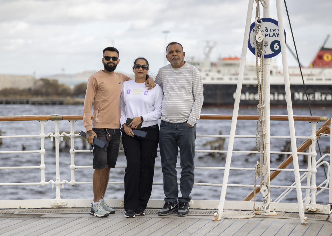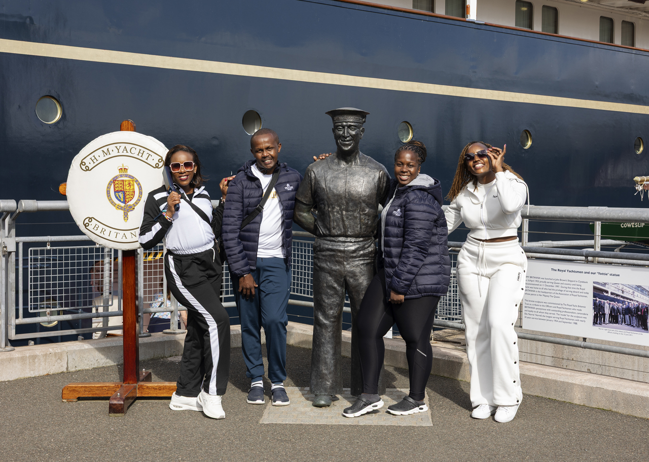Visitors enjoy taking photos beside the statue of Ellis 'Norrie' Norrell MVO RVM, The Royal Yacht Britannia’s longest-serving Royal Yachtsman.