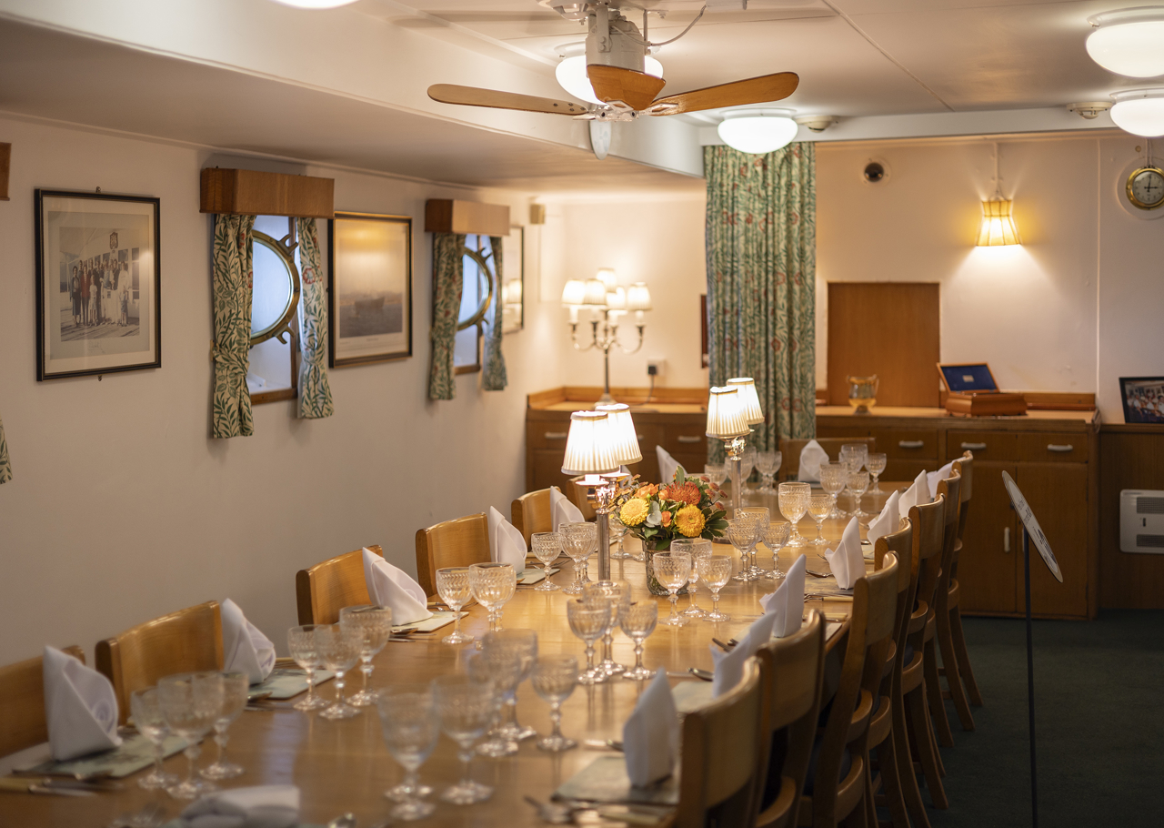 Each day in the Officers' Wardroom, Britannia’s nineteen Officers gathered for meals and to unwind after long hours on duty.