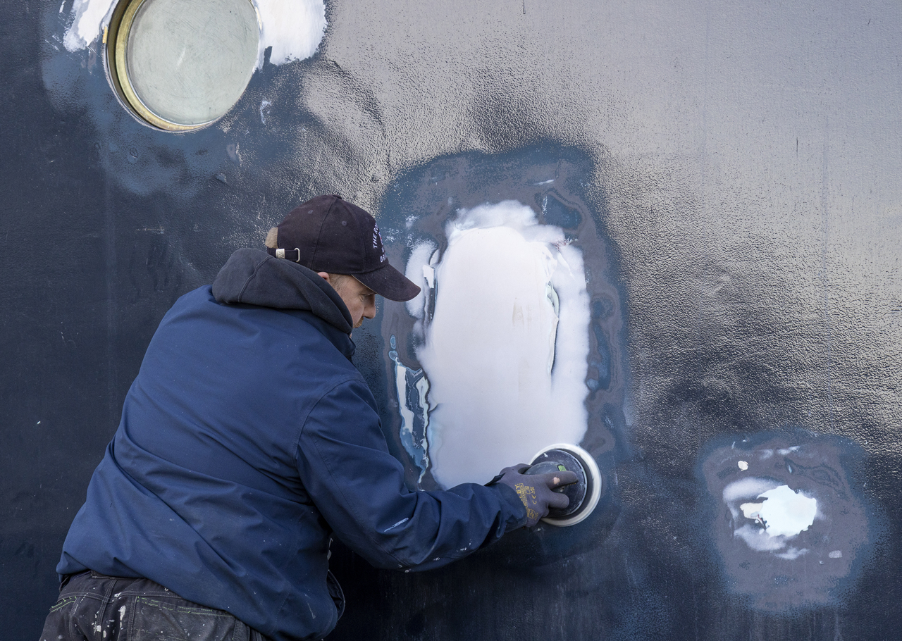 Cameron, Housekeeper, carefully polishing the brass fixtures in the State Dining Room—where Queen Elizabeth II and Prince Philip entertained guests.