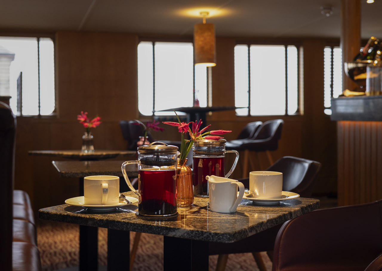 Sit back and relax in the serene atmosphere of The Lighthouse Restaurant aboard the luxury floating hotel, Fingal.