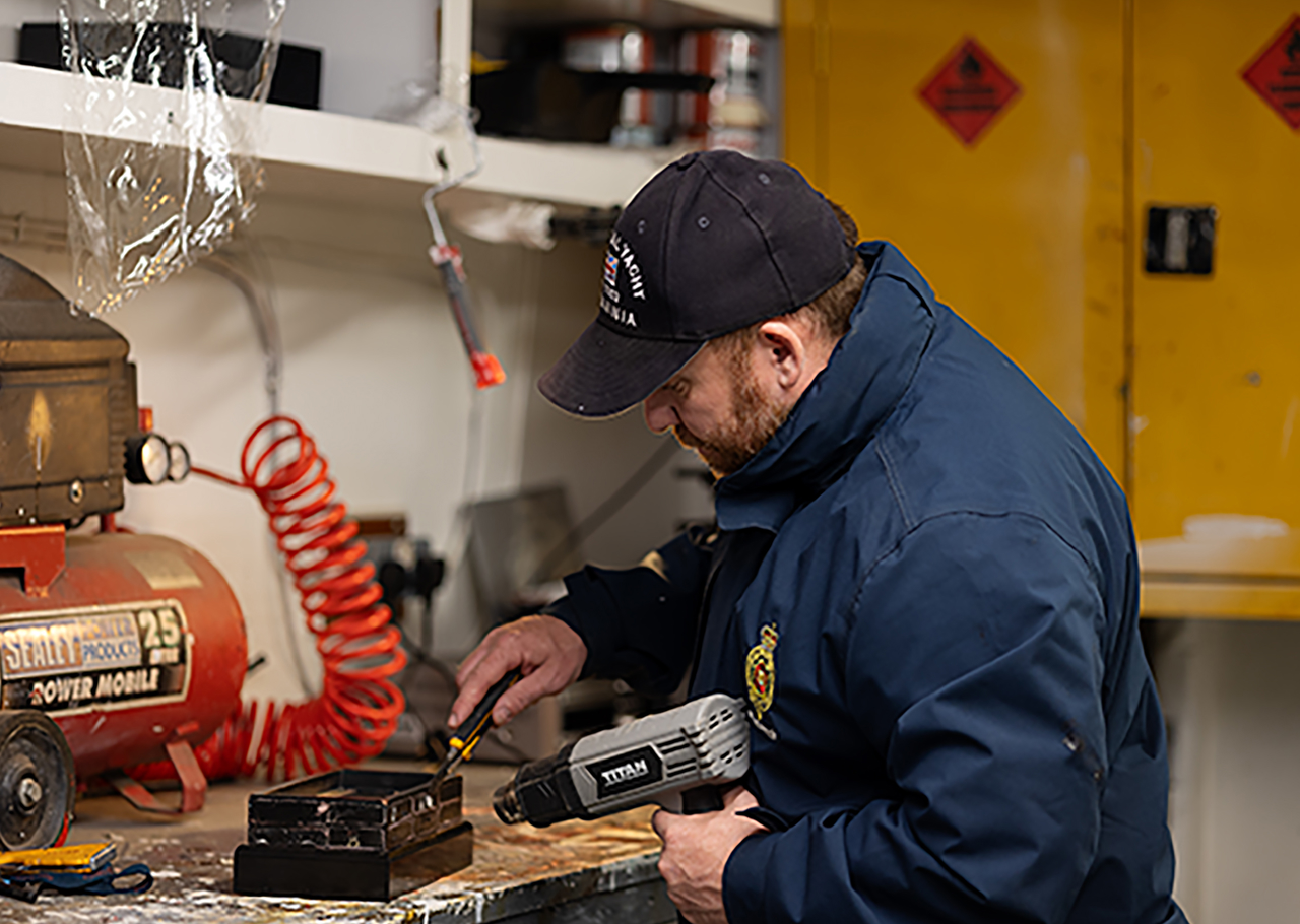 Facilities Officer, Mark, putting the finishing touches on a herb planter to be installed on the Quayside.