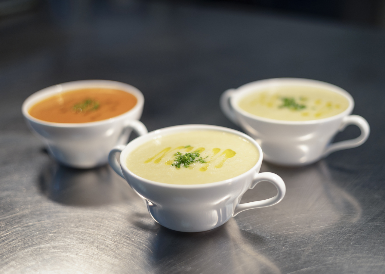 Join us for a relaxing lunch in the Tearoom. Will you choose our Galley’s signature cream of Cullen skink with chives, or flavourful roasted red bell pepper and vine plum tomato soup?