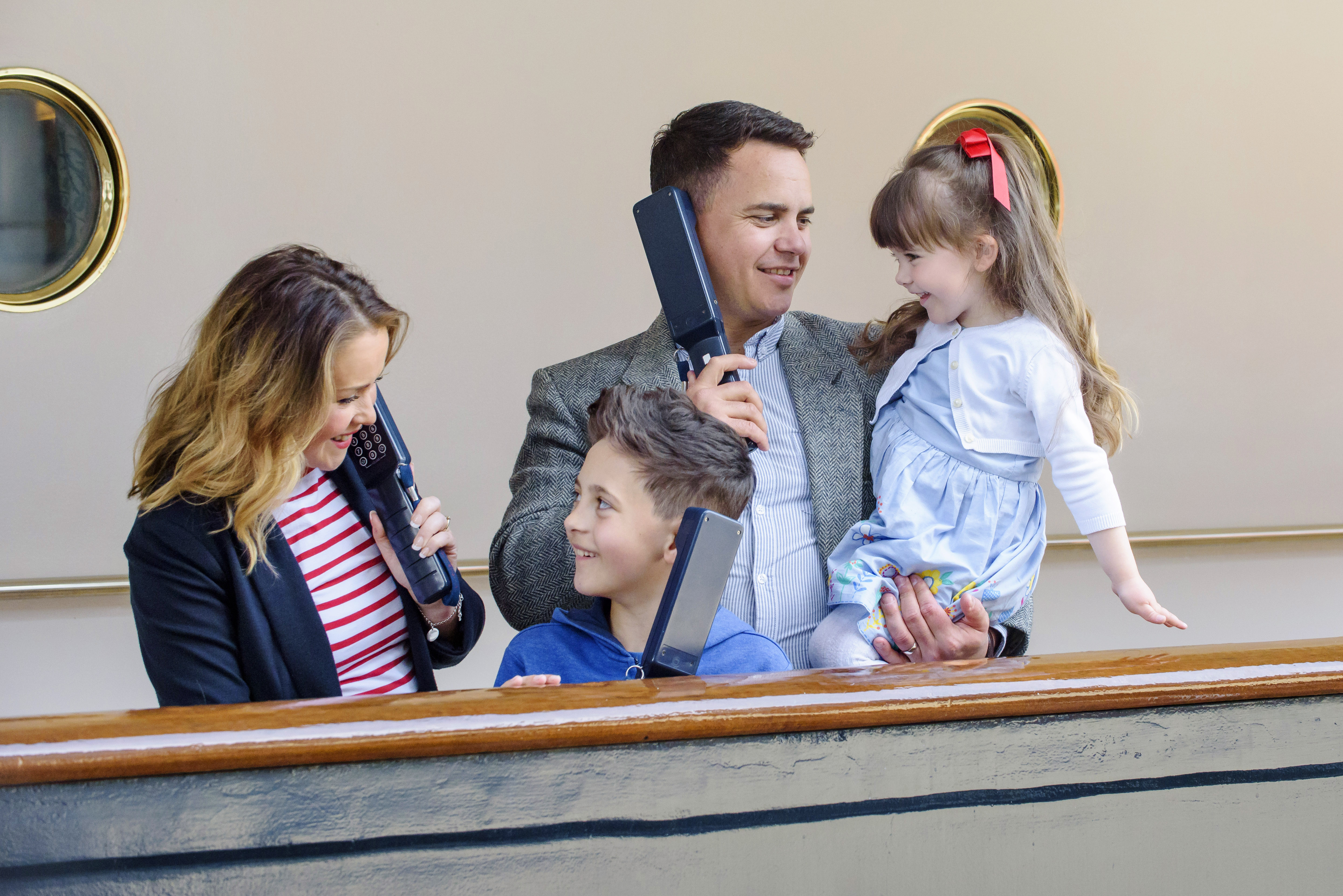 A family listens to their audio guides aboard The Royal Yacht Britannia.