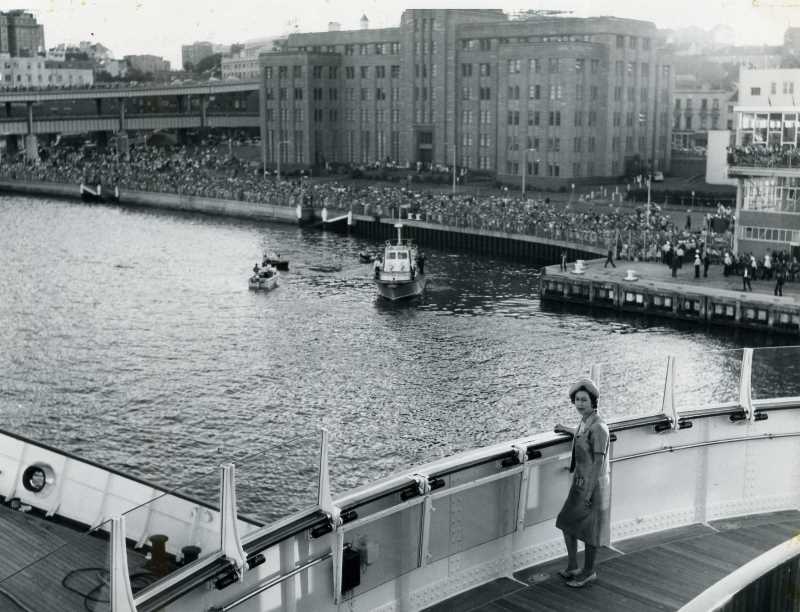 HM The Queen as the Royal Yacht departs Sydney, 1963.