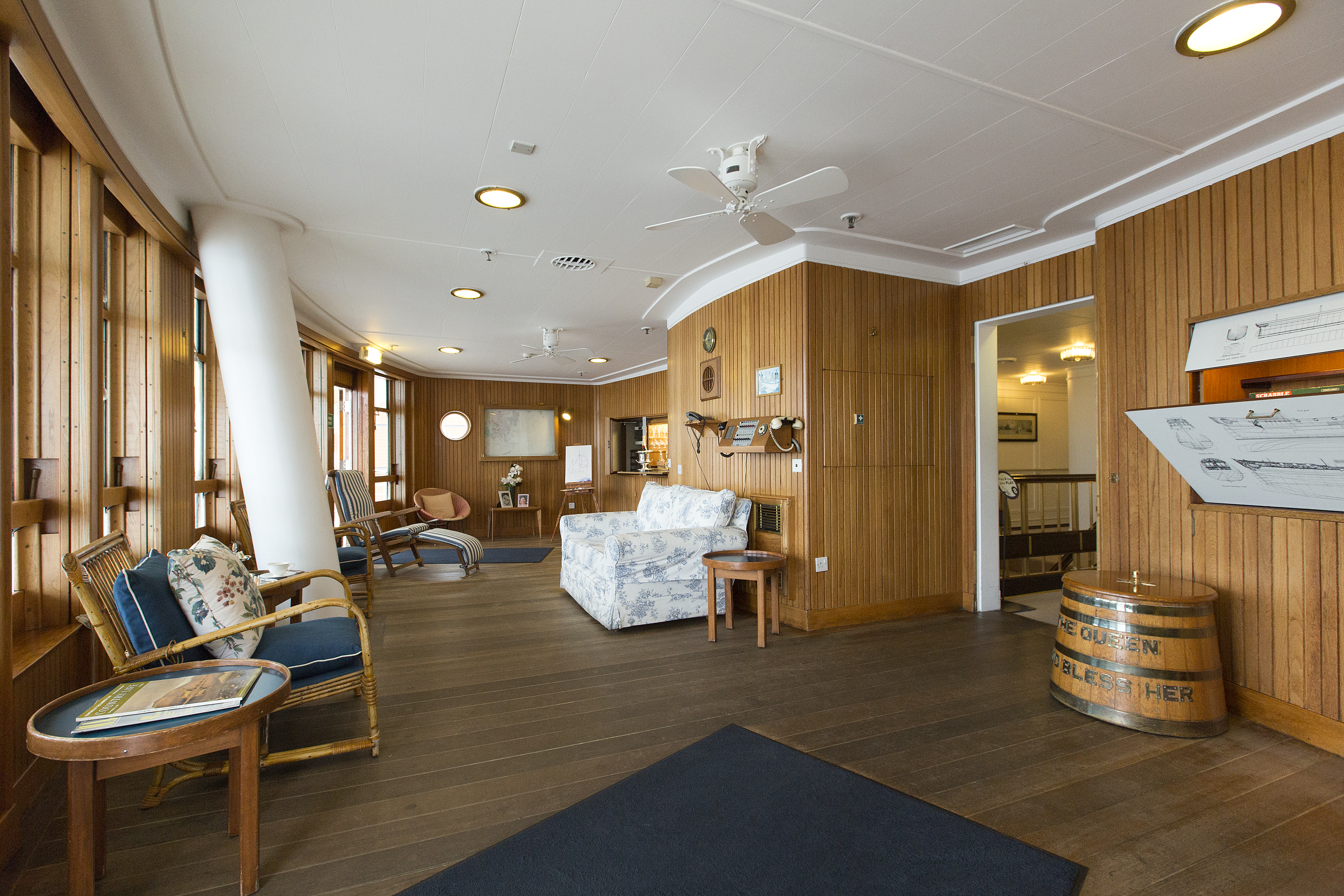 Marvel at the grandest room onboard, The State Dining Room, where the spectacular banquets’ guest lists included incredible names from the pages of world history such as Churchill, Thatcher, Mandela, Reagan, Clinton and Yeltsin. Spot the gifts and mementoes collected from far flung places which line the walls in a mini museum of curiosities: a two-metre long whalebone, which Prince Philip found on Deception Island and a wooden carving of a shark signed by all the adults living on Pitcairn Island in 1971, descendants of Fletcher Christian, the leader of the Bounty mutiny.