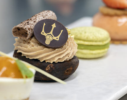 A visitor looked on as Executive Pastry Chef, Stephen, and Junior Sous Chef, Bob, prepared petits fours with delightful yuzu and matcha tea fillings for an exclusive use event.