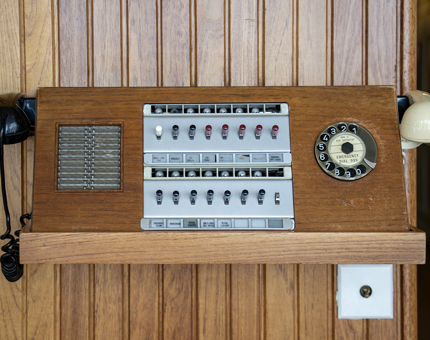 The original telephone in the teak-lined Sun Lounge, Queen Elizabeth II's favourite room on Britannia.