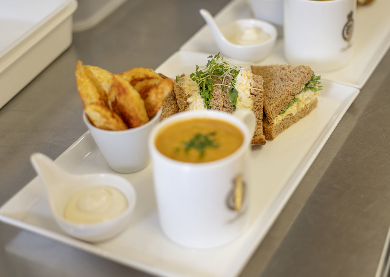 Have lunch with us in the Tearoom during your tour. Try our Britannia platter featuring your choice of soup and sandwich, served alongside twice-cooked smoked paprika potato wedges and a side of garlic mayonnaise.