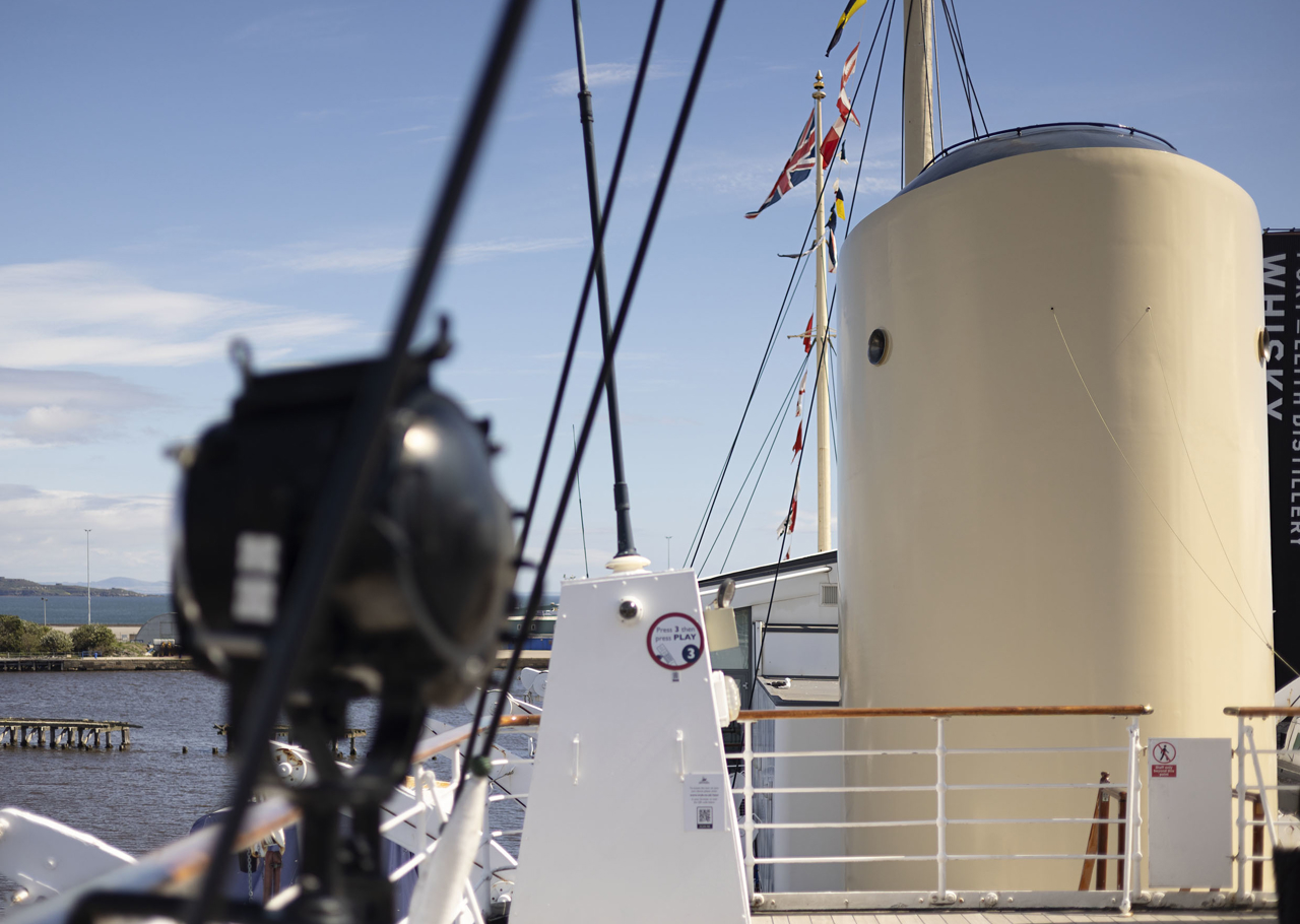 From the Flag Deck, the highest point on the Royal Yacht, visitors get a great view of Britannia's Funnel.