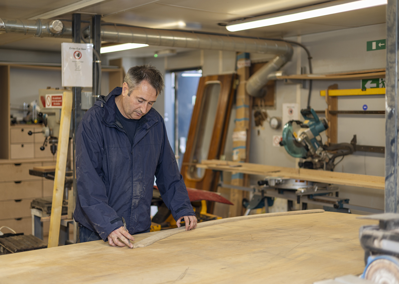 The Sun Lounge, a gorgeous teak-lined room, was one of Queen Elizabeth II's favourite spaces aboard Britannia. Behind the illustrated wall panels of former royal yachts lies a cleverly hidden drinks cabinet.