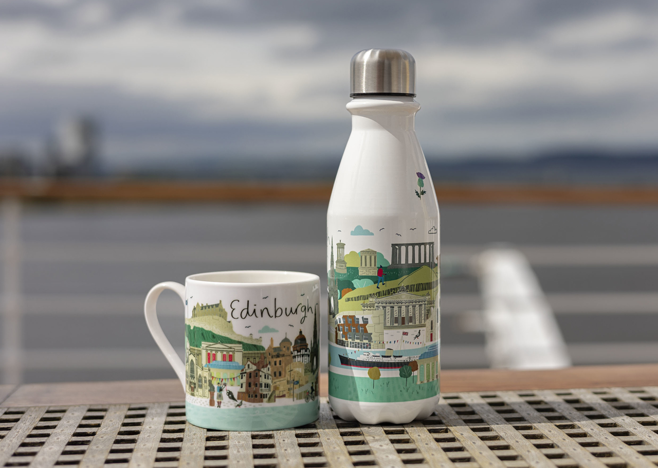 Featuring beautifully-illustrated scenes of Edinburgh, our collection of mugs and water bottles makes the perfect keepsake from your visit to this historic city.