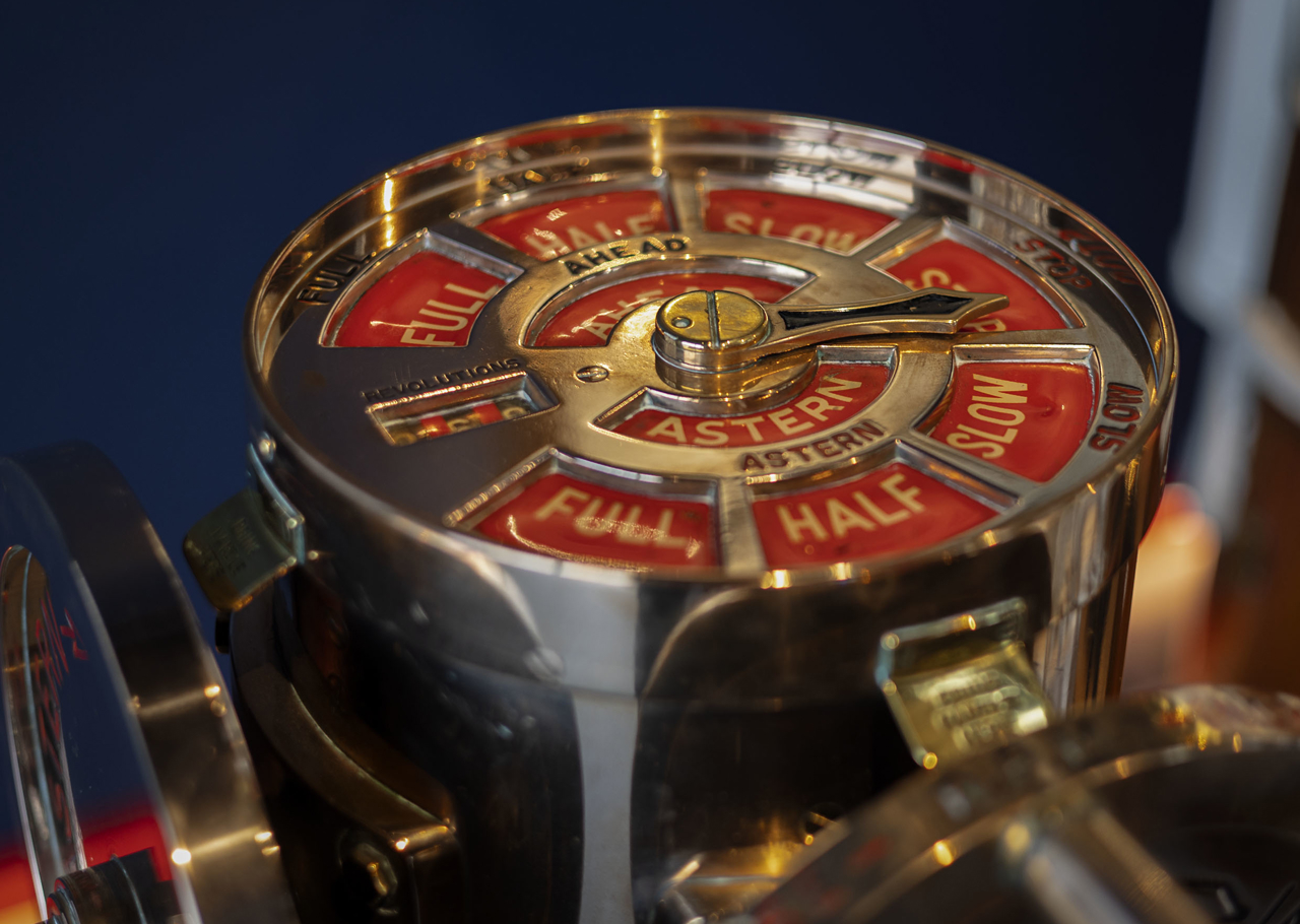 On display in the Visitor Centre, the ship’s engine order telegraph once played a vital role in relaying commands from the Bridge to the Engine Room.