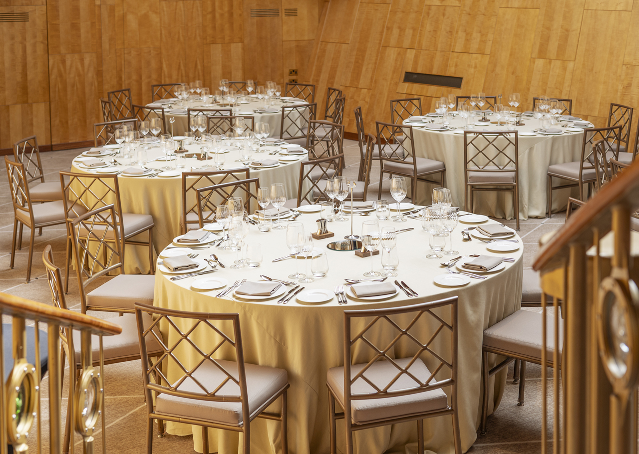 Fingal’s Ballroom provides a breathtaking backdrop for exclusive events, boasting a dramatic double-height ceiling, two elegant sweeping staircases, and a private bar.