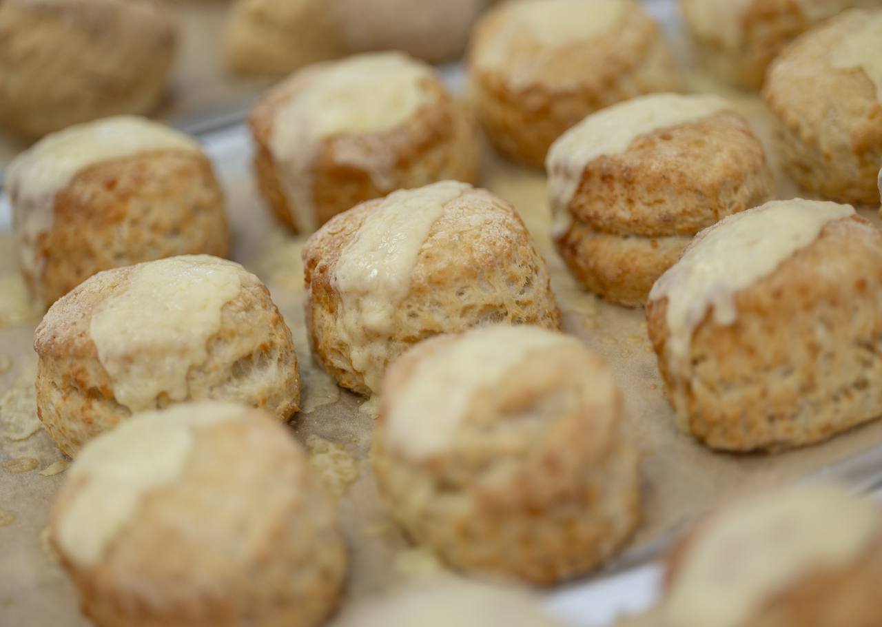 Savoury cheese scones, fresh from the oven in the Royal Deck Tearoom. The perfect companion to a warming bowl of soup.