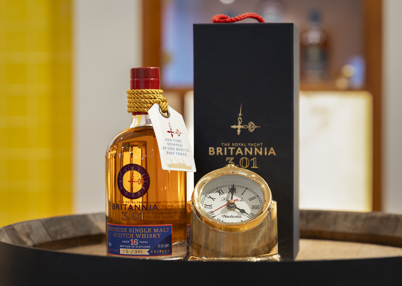 The 3.01 Speyside special edition Whisky, available in our Shop, pays tribute to the exact moment Queen Elizabeth II disembarked Britannia for the final time.