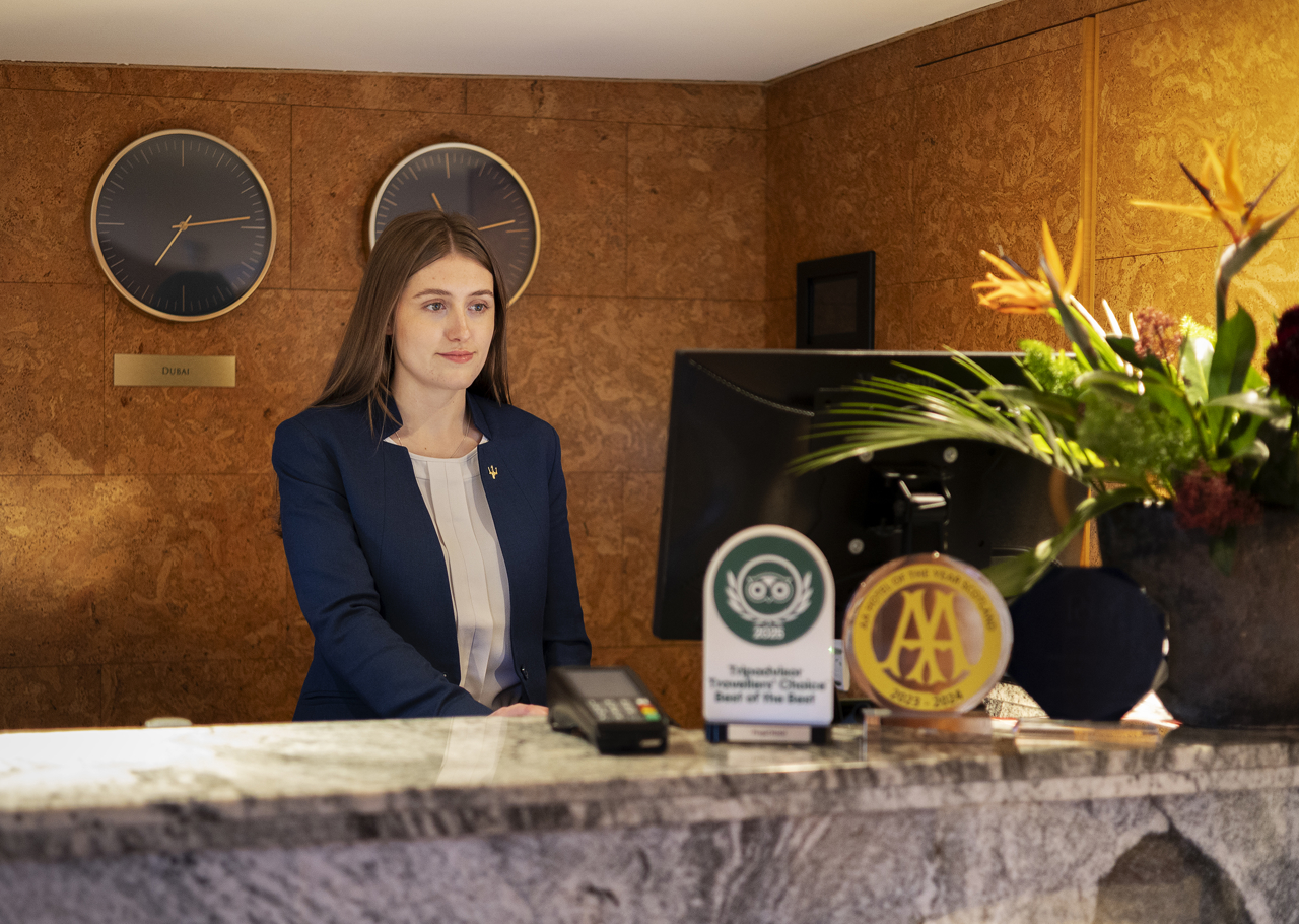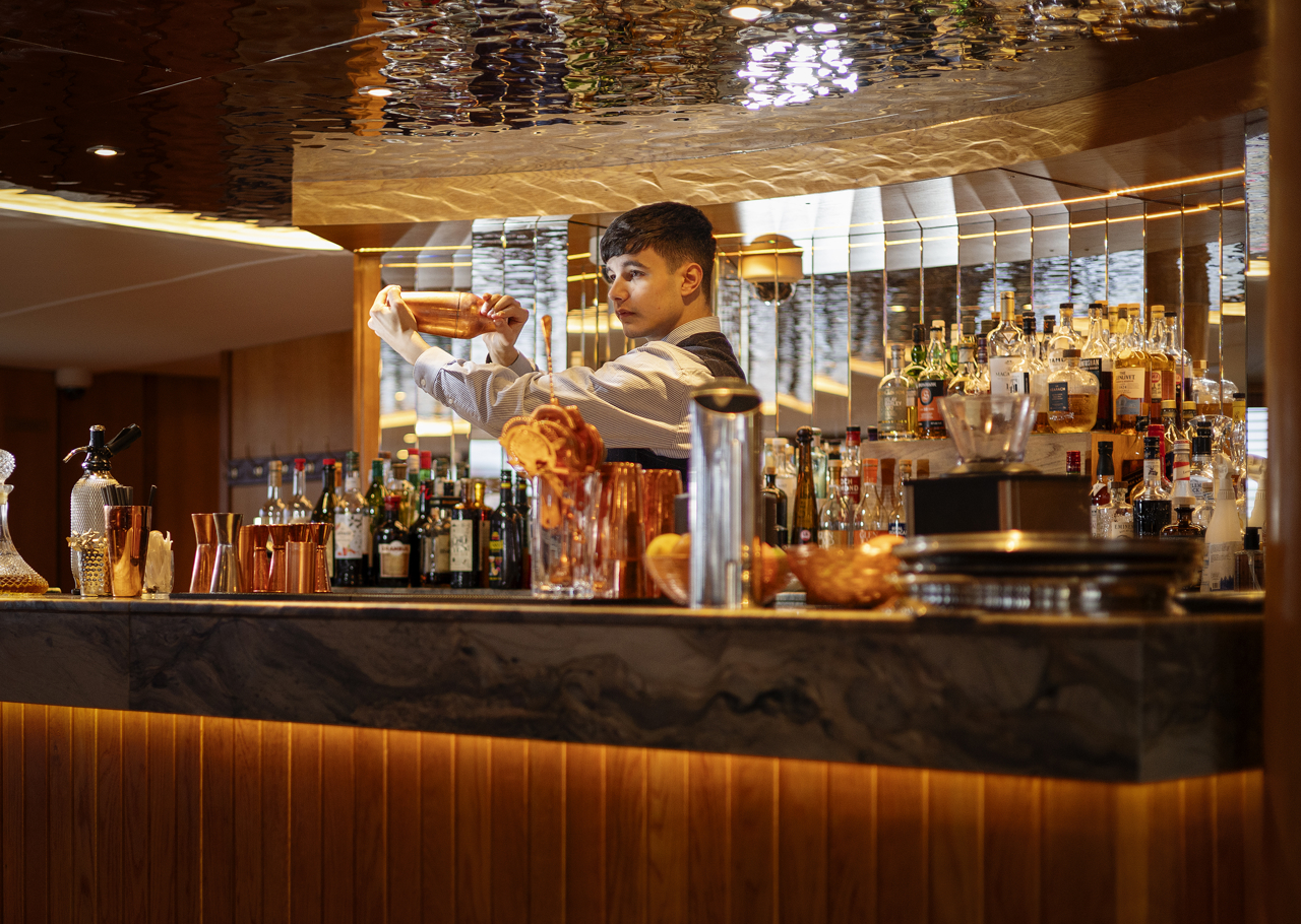 Mia, Guest Experience Assistant, awaits our guests' arrival at Fingal for a luxurious experience in our floating hotel.