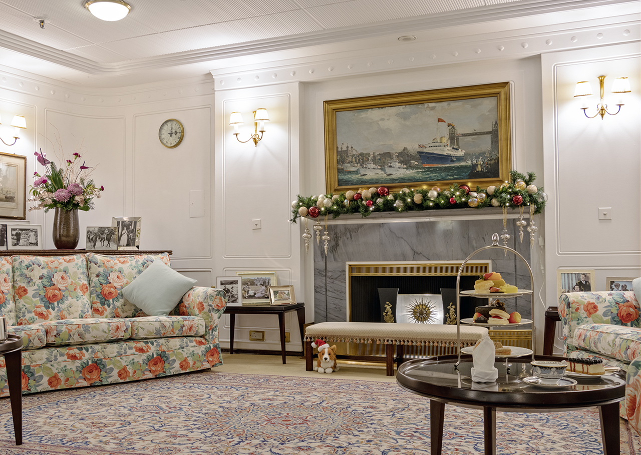 Shelbi, Housekeeper, ensuring that Queen Elizabeth II's favourite room on board, the Sun Lounge, is cleaned to sparkling perfection.