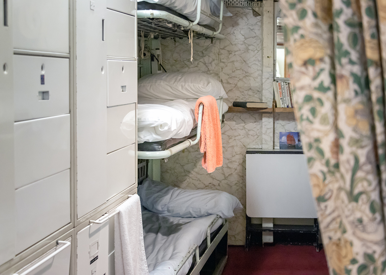 The Royal Marines' bunks in the Mess area. The Band always offered a dazzling performance of the ceremony of Beat the Retreat following a State Banquet.