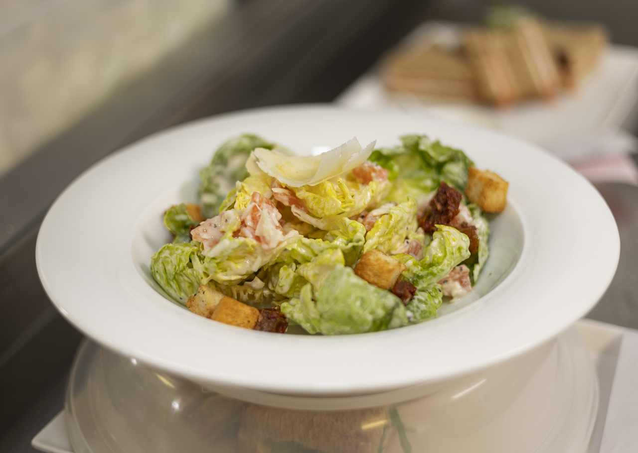 Enjoy a scrumptious lunch of a Caesar salad in the Tearoom, available with oak-smoked salmon or Parmesan.