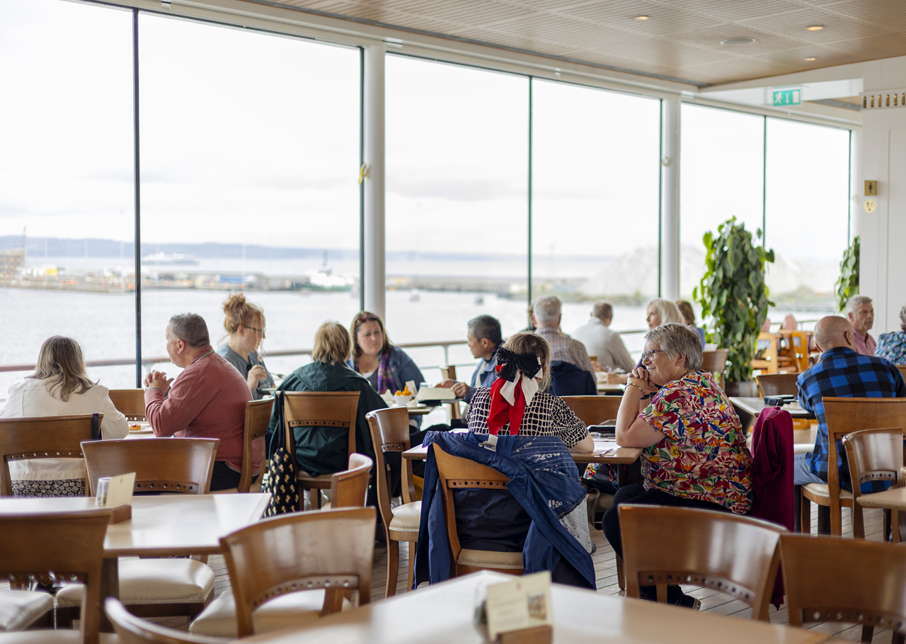 Take a seat by the lovely picture windows and treat yourself to the delicious sweet and savoury delights in the Royal Deck Tearoom, all freshly prepared in the onboard Galley.