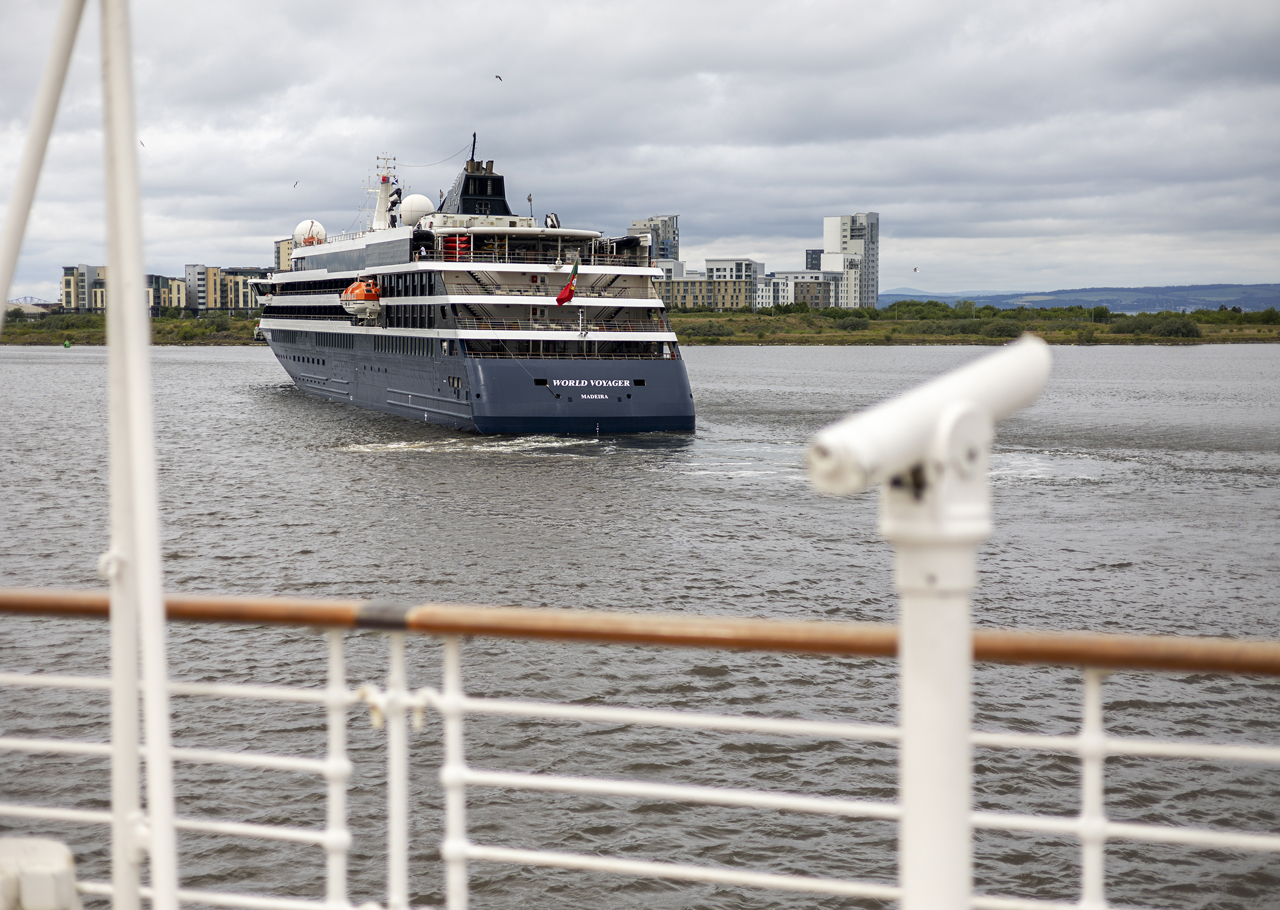 From the Verandah Deck, a great view of the World Voyager cruise ship arriving into the Port of Leith.
