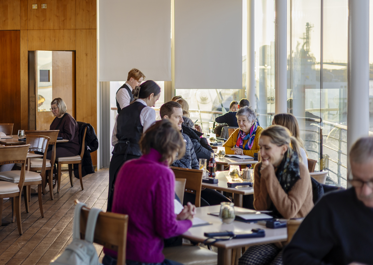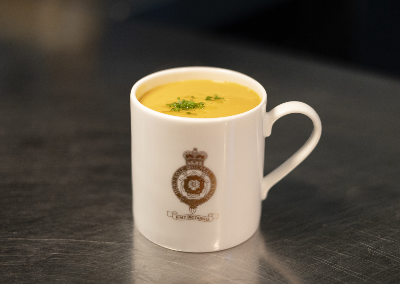 Unwind in the elegant Royal Deck Tearoom and savour a daily selection of freshly prepared soups, sandwiches, cakes, and scones from the onboard Galley.