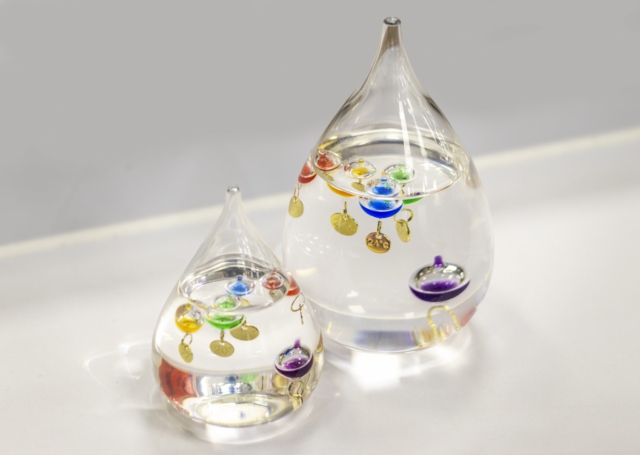 A practical and stylish gift, these Galileo thermometers will tell the temperature of the room. Purchase from our Gift Shop.