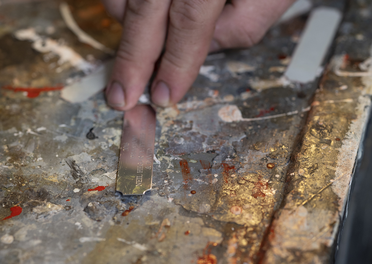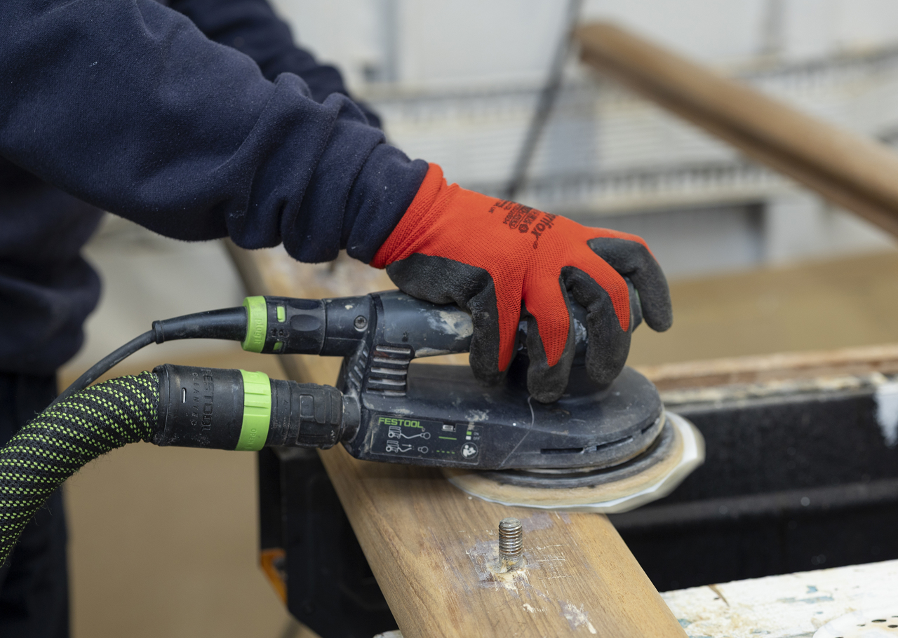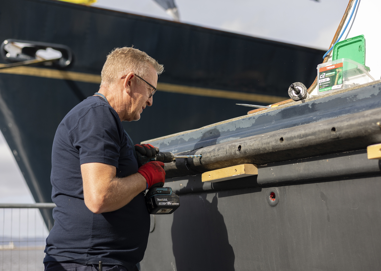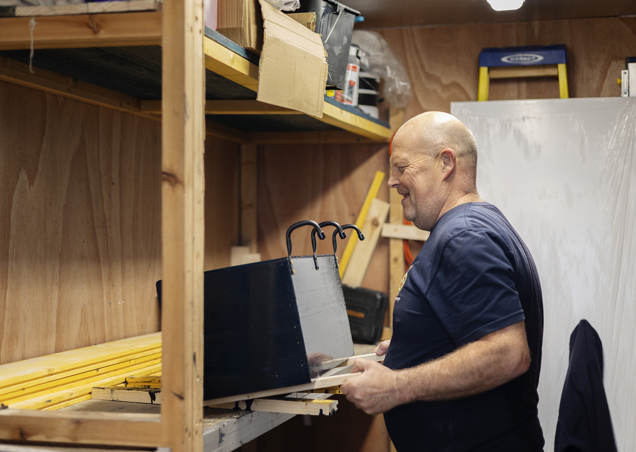 Facilities Officer, Mark, putting the finishing touches on a herb planter to be installed on the Quayside.